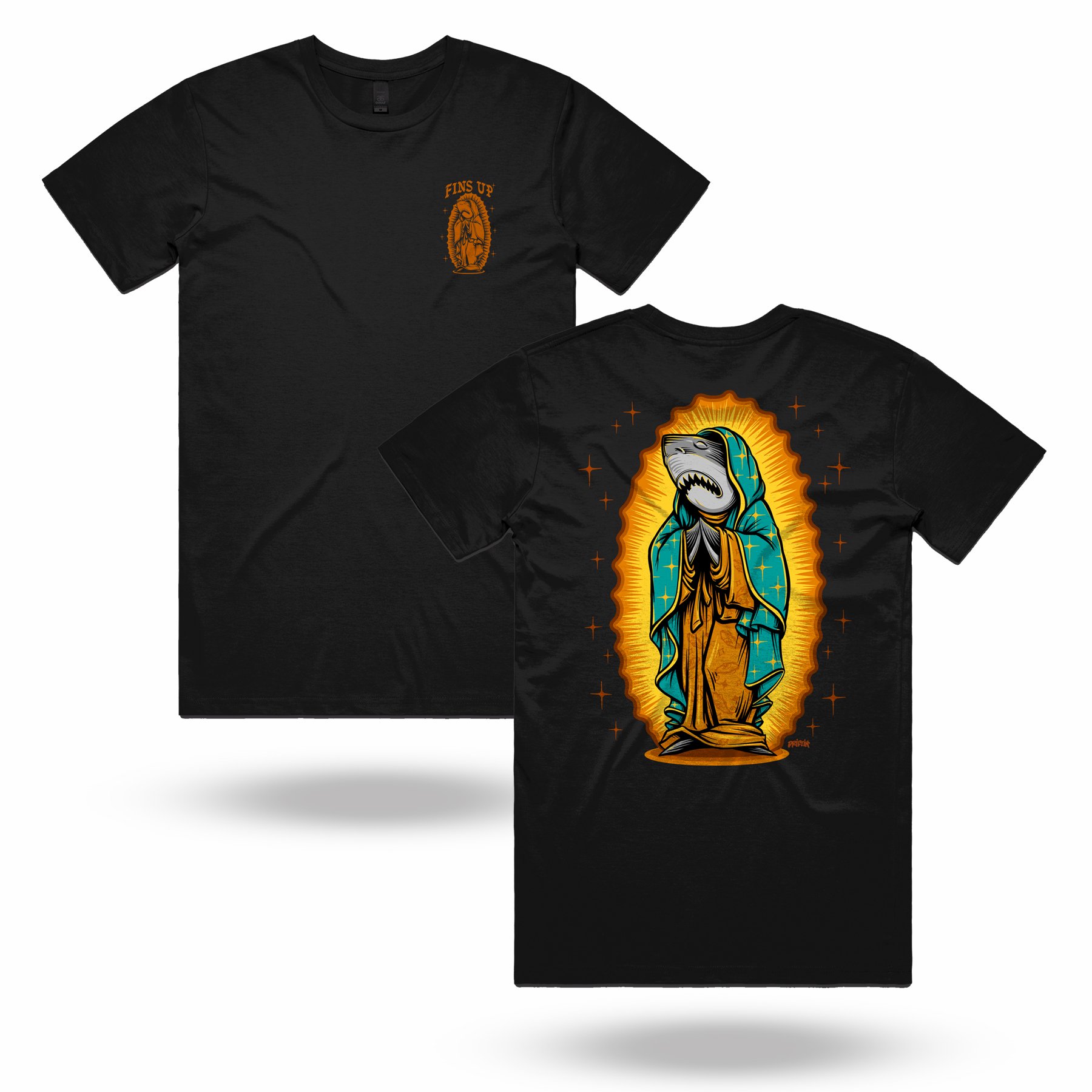 Silk screened on a 5.3 oz 100% combed cotton tee. Regular fit featuring neck ribbing, side seams, and double needle hems for durability and minimal shrinkage.