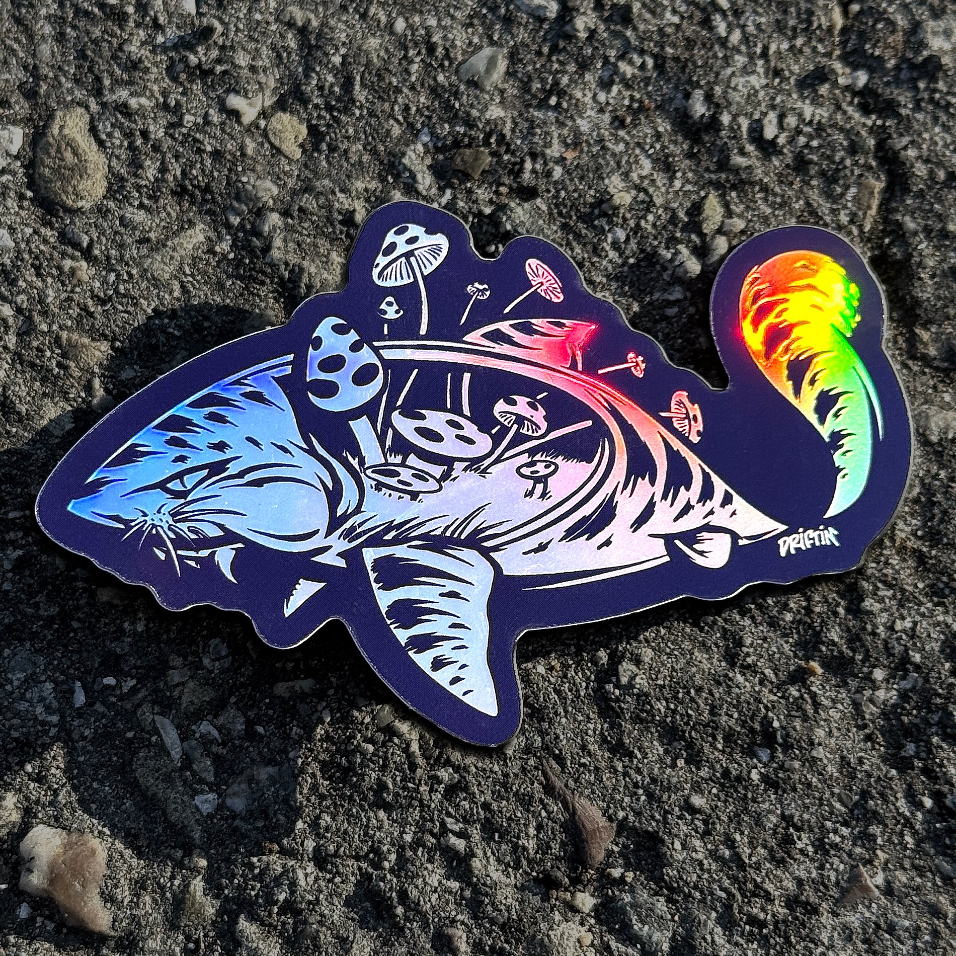 2"x 3.2" Holographic laminated weatherproof sticker.